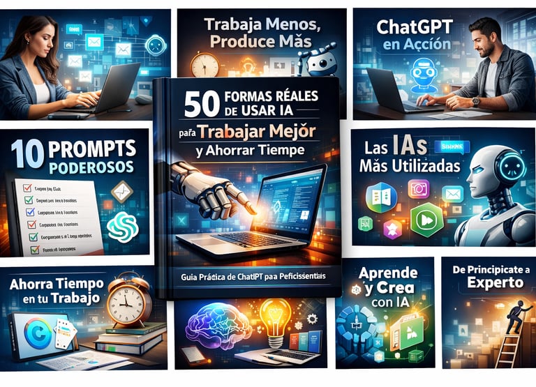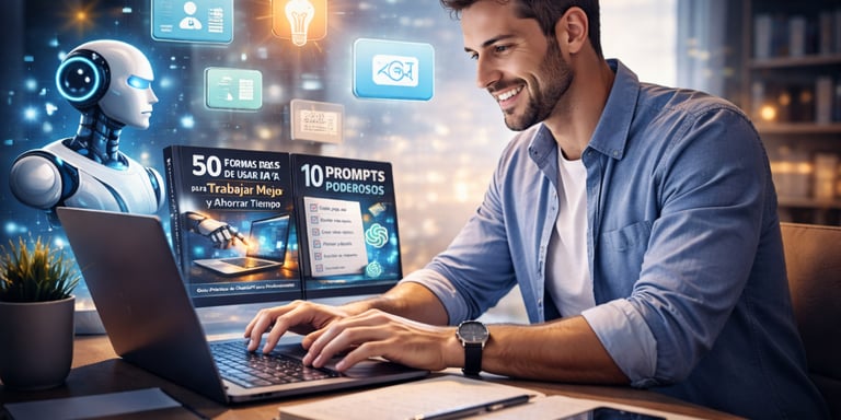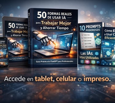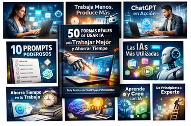 “50 formas reales de usar IA para trabajar mejor y ahorrar tiempo” es una guía práctica que te enseña, paso a paso, cómo usar ChatGPT